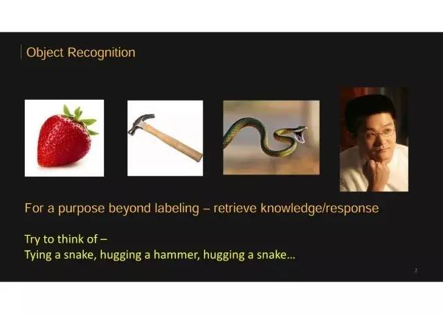 这个例子说明:对于人脑识别物体其实是伴随着去提取它存储的非视觉的语义信息,然后做出相应的反应,以适应于人的生存。