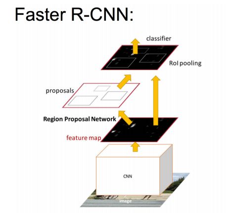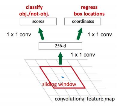 Faster R-CNNFast R-CNN存在的问题:存在瓶颈:选择性搜索,找出所有的候选框,这个也非常耗时。那我们能不能找出一个更加高效的方法来求出这些候选框呢? 解决:加入一个提取边缘的神经网络,也就说找到候选框的工作也交给神经网络来做了。 所以,rgbd在Fast R-CNN中引入Region Proposal Network(RPN)替代selective search,同时引入anchor box应对目标形状的变化问题。 具体做法: • 将RPN放在最后一个卷积层的后面 • RPN直接训练得到候选区域RPN简介: • 在feature map上滑动窗口 • 建一个神经网络用于物体分类+框位置的回归 • 滑动窗口的位置提供了物体的大体位置信息 • 框的回归提供了框更精确的位置