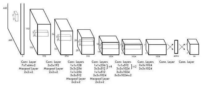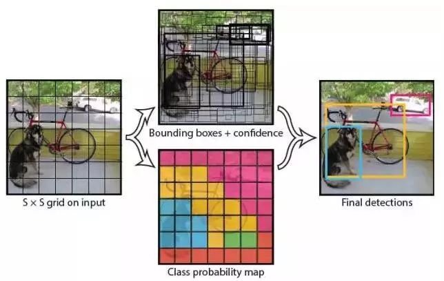 我们直接看上面YOLO的目标检测的流程图: (1) 给个一个输入图像,首先将图像划分成7*7的网格 (2) 对于每个网格,我们都预测2个边框(包括每个边框是目标的置信度以及每个边框区域在多个类别上的概率) (3) 根据上一步可以预测出7*7*2个目标窗口,然后根据阈值去除可能性比较低的目标窗口,最后NMS去除冗余窗口即可。 可以看到整个过程非常简单,不需要中间的region proposal在找目标,直接回归便完成了位置和类别的判定。