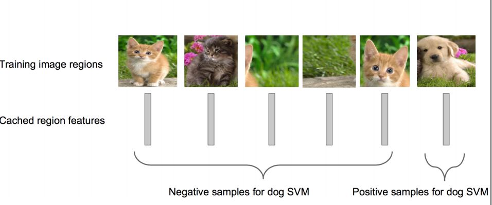 步骤四:训练一个SVM分类器(二分类)来判断这个候选框里物体的类别 每个类别对应一个SVM,判断是不是属于这个类别,是就是positive,反之nagative。 比如下图,就是狗分类的SVM
