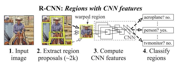 看成分类问题有何不妥? • 你需要找很多位置, 给很多个不同大小的框 • 你还需要对框内的图像分类 • 当然, 如果你的GPU很强大, 恩, 那加油做吧… 所以,传统目标检测的主要问题是: 1)基于滑动窗口的区域选择策略没有针对性,时间复杂度高,窗口冗余 2)手工设计的特征对于多样性的变化没有很好的鲁棒性 看做classification, 有没有办法优化下?我可不想试那么多框那么多位置啊!R-CNN横空出世有人想到一个好方法:预先找出图中目标可能出现的位置,即候选区域(Region Proposal)。利用图像中的纹理、边缘、颜色等信息,可以保证在选取较少窗口(几千甚至几百)的情况下保持较高的召回率(Recall)。 所以,问题就转变成找出可能含有物体的框(也就是候选框,比如选1000个候选框),这些框之间是可以互相重叠互相包含的,这样我们就可以避免暴力枚举的所有框了。