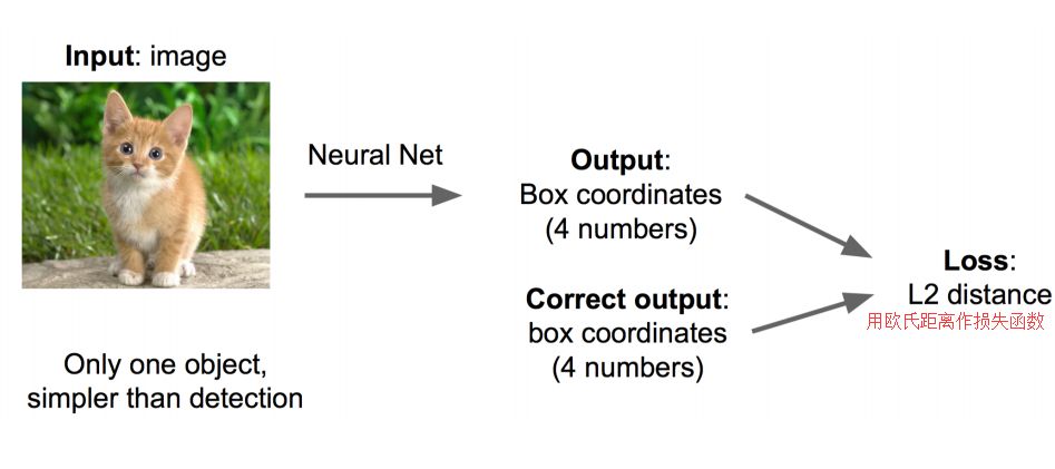 定位(localization): 输入:图片 输出:方框在图片中的位置(x,y,w,h) 评估方法:检测评价函数 intersection-over-union ( IOU )