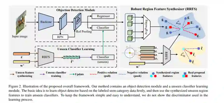 零样本目标检旨在提升模型对训练阶段不可见目标类的检测能力。传统的零样本学习模型在该任务环境下难以为未见目标生成具有足够类内多样性的区域特征,亦或是牺牲掉部分未见目标与图像背景的可区分性。在本研究中,我们充分考虑到物体检测任务的独特性,提出利用训练图像所包含的丰富的前背景区域特征来同时保持未见目标特征的类内多样性和类间可区分性,首次实现了同时针对可见目标类和不可见目标类的统一目标检测模型,并提供了首个零样本遥感目标检测的benchmark。
