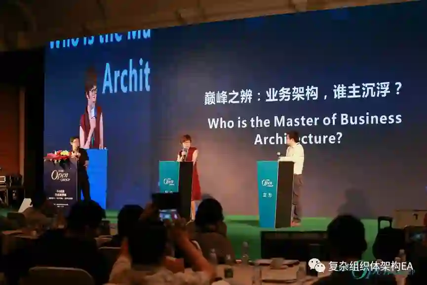 本次活动首次引入了辩论环节,信息技术中心总架构师程燕参与了辩论《业务架构,谁主沉浮?》。在辩论中,程燕持反方观点——业务架构应该由专业的管理/IT部门构建,她提出,业务架构应由业务部门描述、参与并落实,其全局建立中的识别、定义、分析工作应由专业部门推进。在辩论过程中,赛场气氛紧张热烈,双方辩手你来我往、侃侃而谈,思想碰撞产生的火花让场下观众掌声连连响起,互动环节更是将现场气氛活跃起来。通过辩论,也让所有与会人员对架构有了多方位的认识和理解。