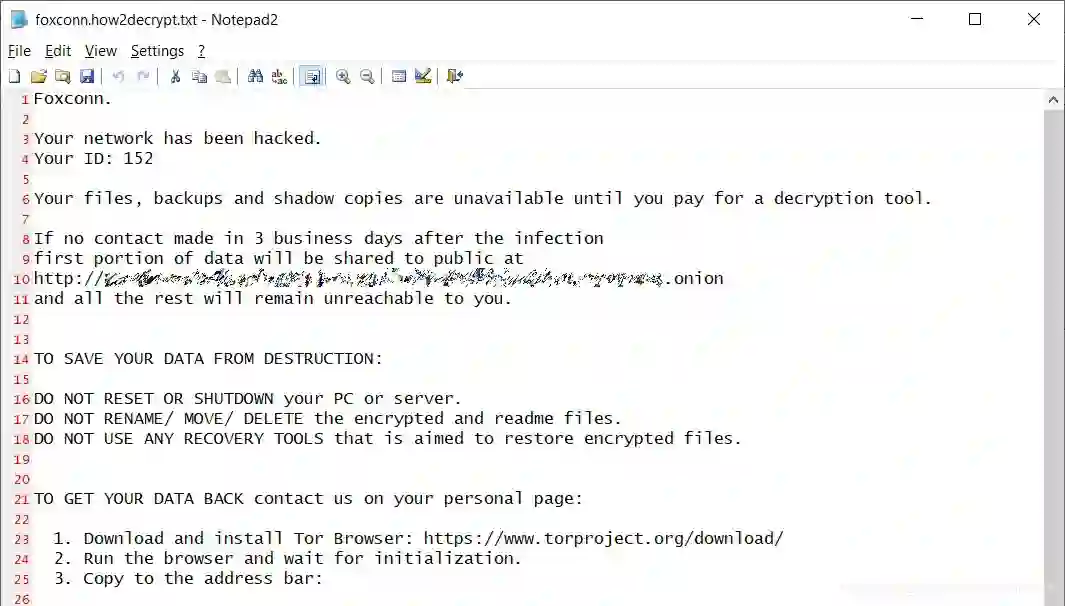 此外,消息人士分享了在攻击期间黑客在富士康服务器上创建的勒索记录,如下所示。
