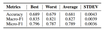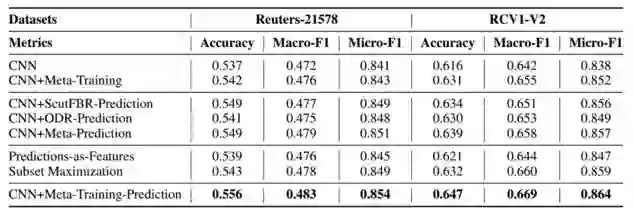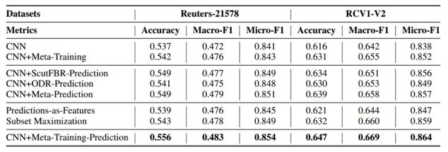 文本分类任务模型选取了经典的 text CNN 模型,数据集有 Reuters-21578、RCV1-V2,实验结果如表3所示。