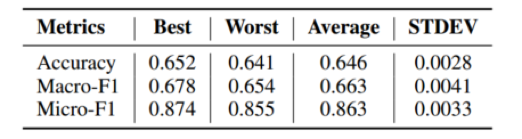 由于本文中 meta-learning 的方法是基于强化学习的框架,而强化学习通常缺乏鲁棒性和对初始化敏感。实验采用不同的初始化方法进行多次实验,结果如表2所示。