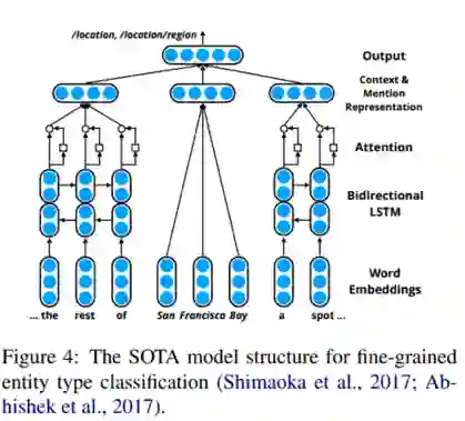 实验在entity typing和text classification两个任务上进行了评测。在entity typing上选取的数据集为FIGER、OntoNotes、BBN,分类模型采用了entity typing中的SOTA模型,其结构如下: