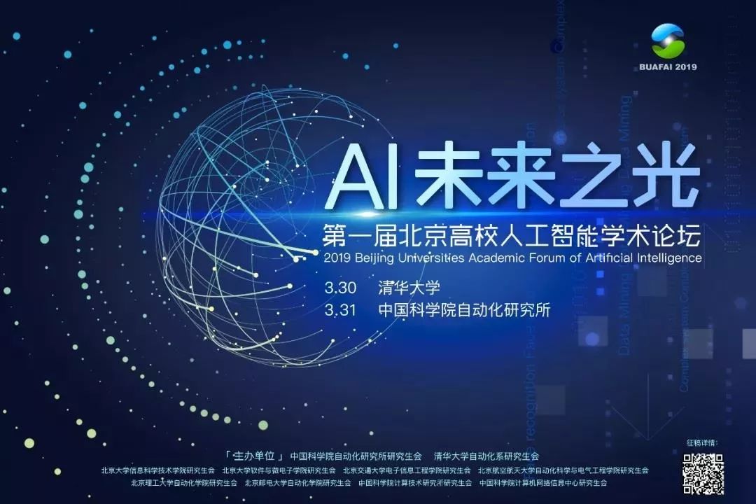 【今日紫冬】由中科院自动化所联合清华大学、北京大学等7所高校及研究院主办的"AI未来之光--第一届北京高校人工智能学术论坛"将于3月30日在北京拉开帷幕,即日起面向北京市高校及研究所相关学科研究生、本科生征稿!投稿截止日期:3月10日晚23:59。