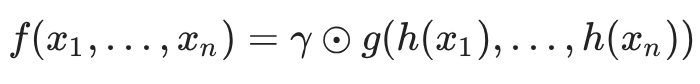 其中 f 是将输入点转换为 k 维向量的转换函数(用于物体分类)。该函数 f 可以近似表示为另一个存在的对称函数 g。在方程中,h 是一个多层感知机(MLP),它将单个输入点(以及它们相应的特征,如 xyz 位置、颜色、表面法线等)映射到更高维度的潜在空间。最大池化操作则会作为对称函数 g 起作用,它将学到的特征聚合为点云的全局描述符。这个单一特征向量会被传递给 另一个输出物体预测结果的多层感知机 γ。