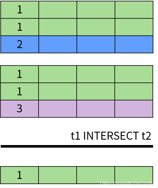 📝SQL 中的关系概念来自数学中的集合理论,因此 UNION、INTERSECT 和 EXCEPT 分别来自集合论中的并集(