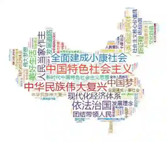 由于篇幅所限,本文只展示了部分关键词提取的结果,关键词词云图分析结果比较充分地展示了十九大报告的核心概念。