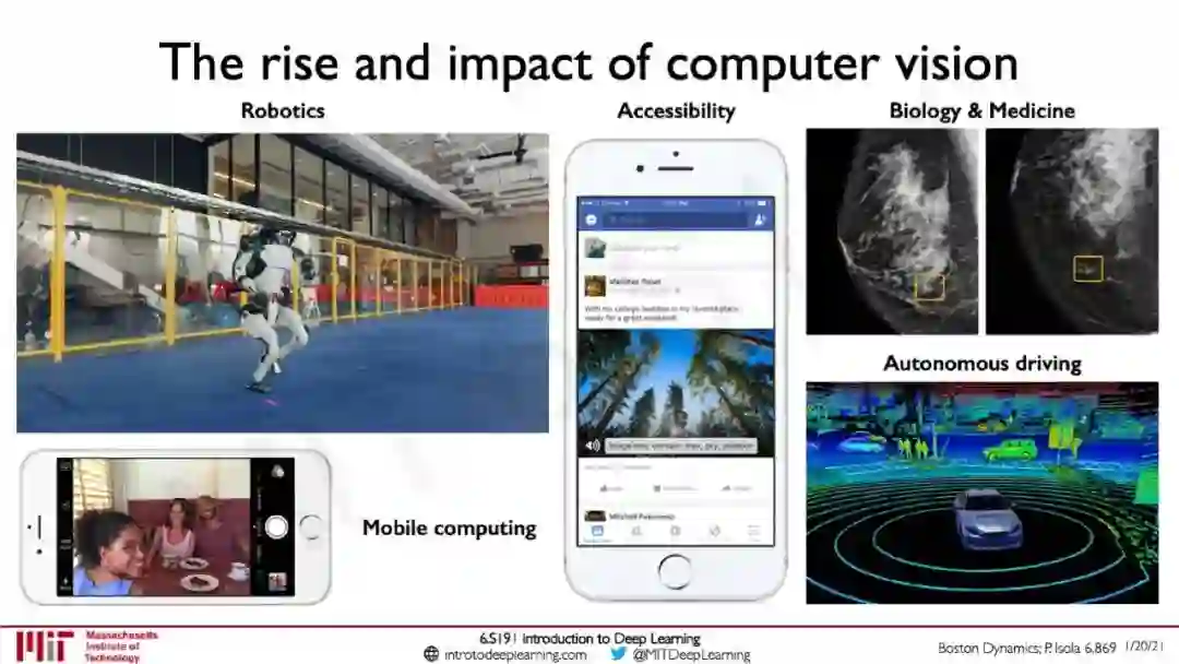 【导论】麻省理工学院最近开设一门深度学习课程MIT 6.S191,共包含十大主题课程,涵盖深度学习导论、序列建模、深度视觉、生成模型、强化学习、图神经网络、对抗学习、贝叶斯模型、神经渲染、机器学习嗅觉等,图文并茂,涵盖最新的前沿内容,非常值得学习!最新一讲是深度计算机视觉。