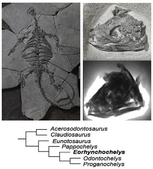 直到2008年,我国学者在贵州省关岭地区发现了半甲齿龟(Odontochelys semitestacea),即一个具有牙齿和只有腹甲的龟,古生物学界才开始对龟类的早期演化有了实质性了解。十年后,2018年8月23日出版的《自然》杂志(Nature)再次报道了中国科学院古脊椎动物与古人类研究所领衔的国际合作团队在同一地区新发现的原始龟类——“中国始喙龟(Eorhynchochelys sinensis)”,这是继半甲齿龟之后关岭出现的又一种重要早期龟类化石。