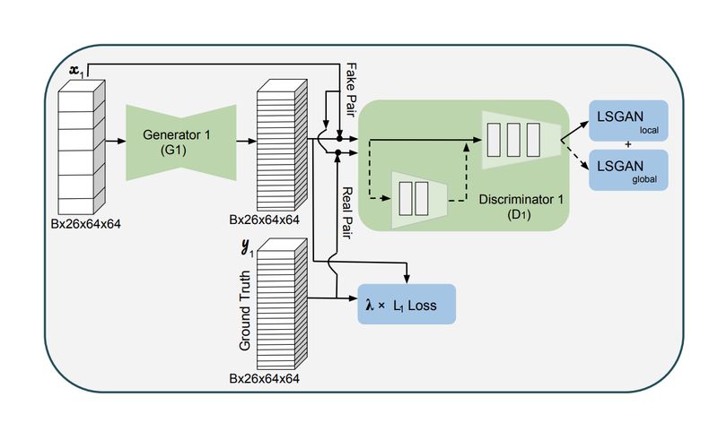 Discriminator 引用了 PatchGAN [1] 的思想,即在公共网络加了 3 层卷积层采用了 21 × 21 Local Discriminator 去衡量局部真假,然后又在公共网络上平行加了 2 层作为 Global Discriminator 去衡量整个图片的真假。