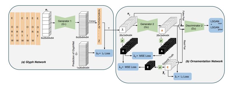 GAN 本来就难训练,作为 Stack GAN 我们有必要把第一阶段网络给预训练一下。那就让我们把 Stack GAN 拆成 Glyph(字形)网络和 Ornamentation(修饰)网络单独来看。
