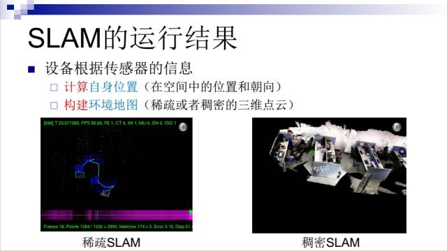 如上面的SLAM运行结果所示,设备根据传感器的信息可以:
