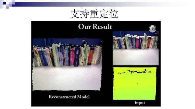我们的方法支持重定位,即使跟踪失败了也能重定位回来。