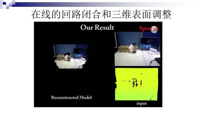 我们的方法可以进行在线的回路闭合和稠密的三维表面实时调整。