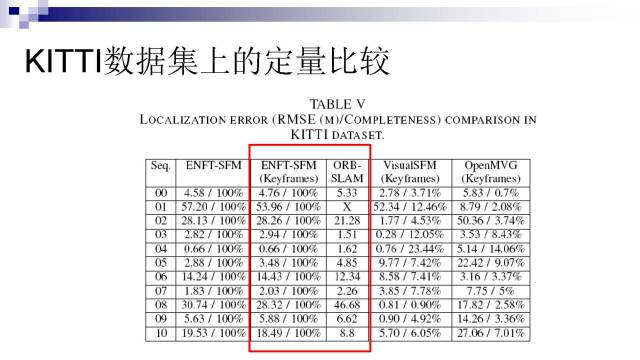 我们在KITTI、TUM数据集上跟其他方法做了比较。可以看到在这些数据集下,我们的结果跟ORB-SLAM差不多,但是在更复杂的循环回路数据下我们的结果有明显的优势。