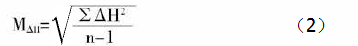 根据表2 中的△H 数据,可知最大高程误差和最小高程误差,同时可以依据公式(2 )求解出高程中误差m△11。