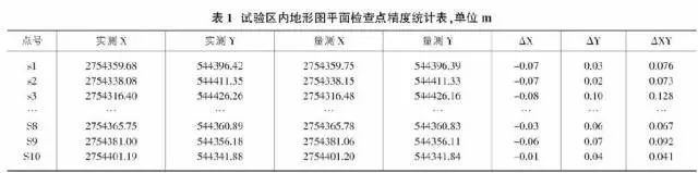 为了检验试验区内地形图的平面精度,一共实地量测量1 0 个平面检查点,地形图平面检查点的平面精度统计见表1 所示。