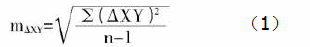 根据表1 中的△X 、△ Y 和△XY 数据,就可以依据中误差公式求解出检查点的点位中误差m△XY,见公式1。