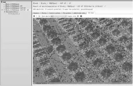 ⑥ 绝对空三解算,在刺好所有像控点后,进行绝对空三处理,在G e n e ra l菜单下提交“空三”,提交后弹出"空三”定义窗口设置块输出名称及位置参考等信息便可提交运行。提交完成后,会自动计算,计算过程中不能进行任何操作。运行结束后,可通过3D V ie w 菜单查看形成的“空三”关系模型,包括相机曝光点的位置信息等,见图3 所示。