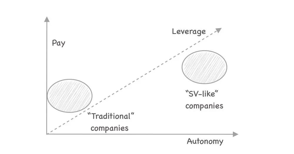任何一家类似硅谷的公司,如果想要在工程师的报酬方面竞争,就必须创造高杠杆,以使这些工程师所带来的价值超过工资。这一杠杆可以通过规模和业务增长两方面来体现。在不必要的通讯、工具等方面减少浪费的时间,就会增加这种影响力。给工程师足够的自主权,让他们对企业作出(超额)贡献,就是保持这种杠杆效应的方法。