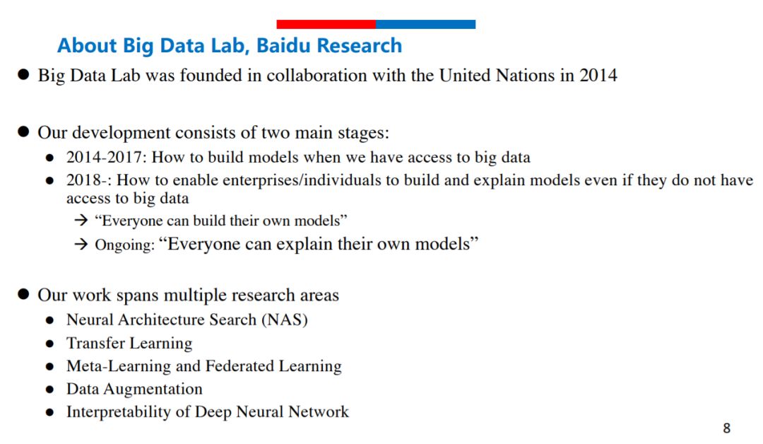 其他讲者包括:Dr. Jun Huan,Dr. Siyu Huang,Dr. Di Hu,Mr. Xingjian Li,Dr. Haoyi Xiong,Dr. Boyang Li