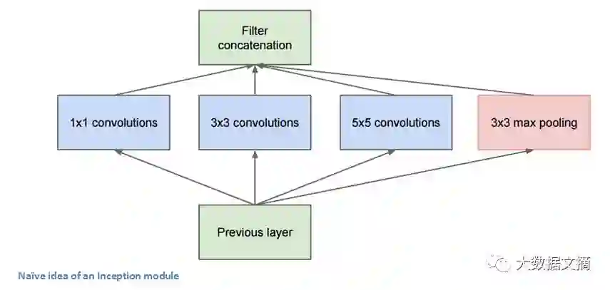你还可以用一个池化操作来减少占用空间大小,并防止过度拟合。 此外,每个卷积层之后都进行ReLUs,这有助于提高网络的非线性。大体来讲,这样的网络能够做到执行各类操作的同时仍保持计算性。 这篇论文还提出了一个高层次的推理,涉及稀疏性(sparsity)和密集连接(dense connections)等主题。(参见论文http://www.cv-foundation.org/openaccess/content_cvpr_2015/papers/Szegedy_Going_Deeper_With_2015_CVPR_paper.pdf的第3段和第4段。我并不很理解这方面的内容,但很乐意听到你们在评论中发表自己的见解。)