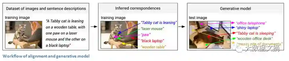 这很不可思议!我们来看看这与正常的CNN相比如何。 对于传统的CNN,训练数据中每个图像都有一个明确的标签。 本论文中所描述的模型,其每个训练实例都具有一个与各个图像相关联的句子或标题 。 这种类型的标签被称为弱标签,其中句子的成分指的是图像的(未知)部分。 使用这个训练数据,一个深度神经网络“推断出句子的各个部分和他们描述的区域之间的潜在对应”(引自论文)。 另一个神经网络将图像作为输入,并生成文本描述。 让我们来看看这两个组件:对准和生成。