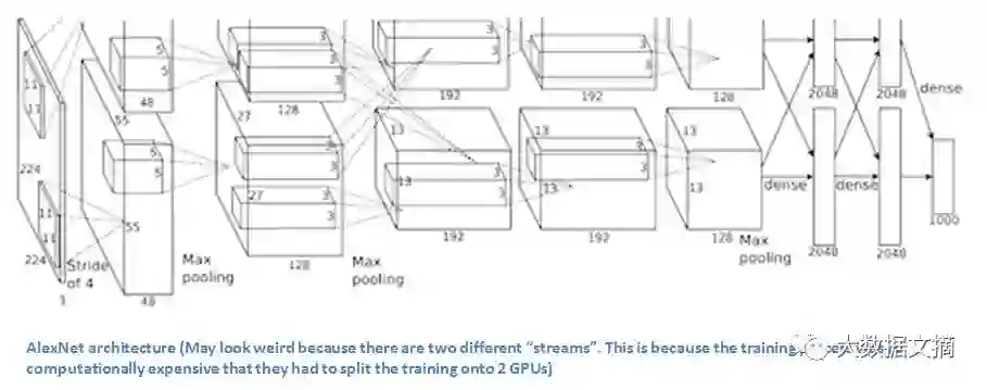 这篇论文里讨论了AlexNet神经网络的具体结构。相比现在流行的神经网络构架,它的结构其实非常简单:5个卷积层、最大池化层(max pooling layer),dropout层,和3个全连接层(fully connected layers)。但这个结构已经可以被用来分类1000种图片了。