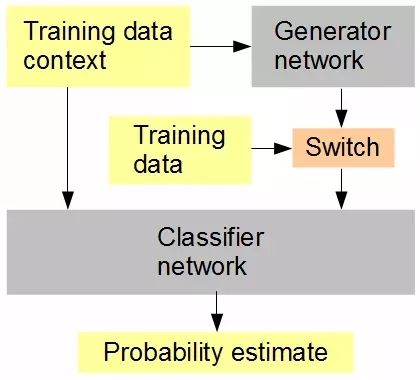 我的想法如下图所示:与生成器同时训练一个分类器网络,以随机或交替顺序向该网络输入生成数据和原始数据。然后,分类器根据周围图像的语境猜测该输入是原始数据 (1) 或生成数据 (0)。同时,生成器网络尝试从分类器中获得高分 (1)。
