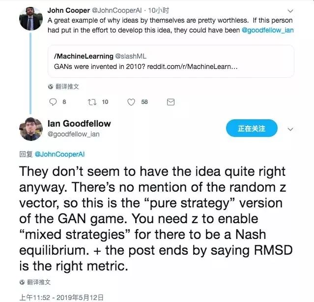 2017年5月,我看到了Ian Goodfellow在NIPS 2016 GAN Tutorial上的演讲视频,这让我非常开心。他的基本思想与我的一样,而且他做了艰苦的研究,实现了很好的结果。该演讲回答了我的很多疑问。