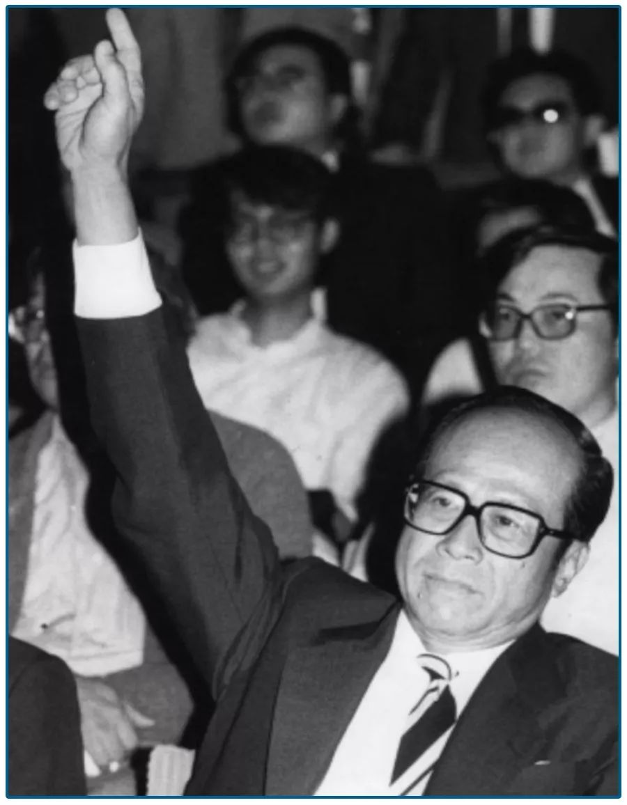 ▲80年代一次土地竞投时,李嘉诚出价时的招牌手势