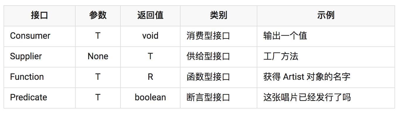 实际上诸如上述例子中的接口,伟大的jdk设计者为我们准备了java.util.function包