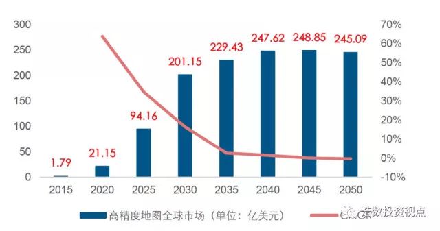 海外研究高精地图单车价值约为 200 美金,随着自动驾驶汽车在 2020 年后的量产出现将迎来高速增长。由于国外高精度地图发展相对更为成熟,相关市场估算更具参考价值,根据高盛对高精度地图全球市场判断,预计未来的十五年高精度地图行业将迎来黄金发展期,到 2020 年高精度地图市场为 21 亿美元,2025 该市场将达到 94 亿美元。相比而言,国内高精度地图商业模式尚未清晰,未来具体市场大小难以预判,然而根据国内汽车市场约占全球车市 30% 的份额,随着国内高精度地图技术和商业模式逐渐成熟,国内高精度地图市场也不容小觑。