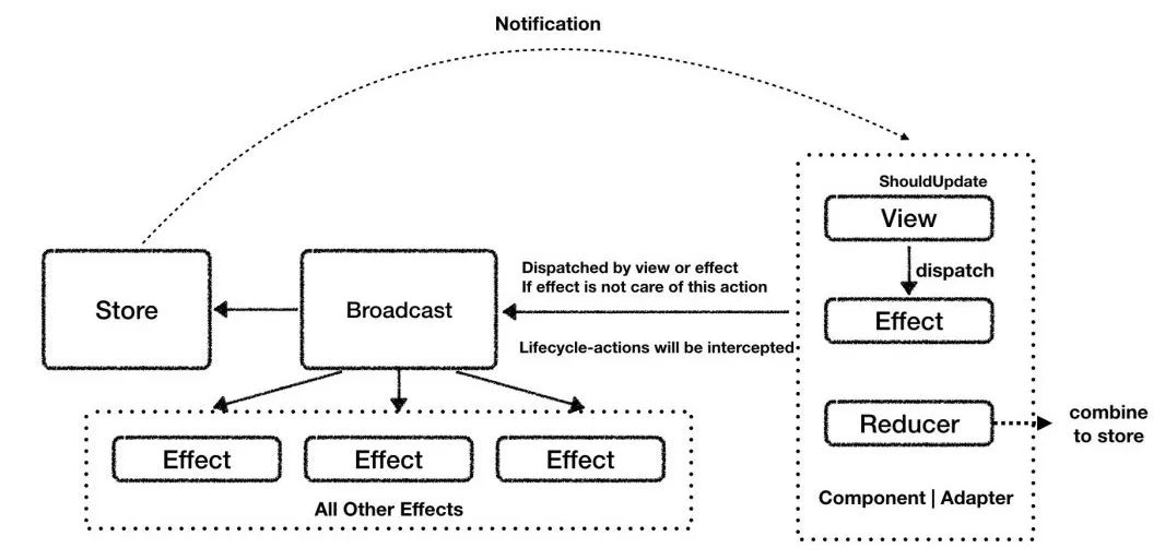 State、Action、Reducer、Store、Middleware 以上概念和社区的 ReduxJS 是完全一致的。我们将原汁原味地保留所有的 Redux 的优势。