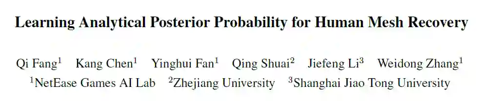 近日,网易互娱 AI Lab 基于开发该软件的经验,并结合在动捕领域的相关研究工作进行了整理,其所撰写的论文《Learning Analytical Posterior Probability for Human Mesh Recovery》被计算机视觉顶会 CVPR 2023 接收。
