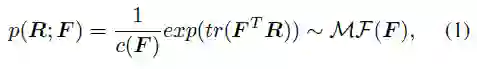 首先,SO (3) 上的 matrix Fisher 分布 MF (⋅) 可作为关节旋转 R 的先验分布,如下式所示,F∈R^(3×3) 是该分布的参数,c (F) 是一个归一化常量,tr 表示矩阵的迹。