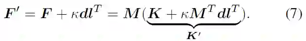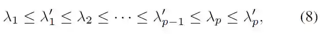 其中 M^T dl^T=ll^T 是一个秩 1 实对称矩阵,而 K 也是一个实对称矩阵,即后验的聚集项 K' 同样是实对称矩阵。根据矩阵分析中关于实对称矩阵的交错定理,可以得到 K' 的特征值 λ_i' 和 K 的特征值 λ_i 具有如下不等式关系: