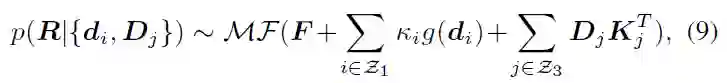 前述部分介绍了人体关节旋转后验概率的解析形式,该概率由一个新的参数 F' 表征。可以从另一个角度理解后验参数 F^',即 F^' 是与 F 相同的均值项 M 和一个新的聚集项 K^' 的乘积: