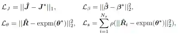 其中 κ_i 和 K_j 是聚集项。g (⋅) 是一个 IK 形式的映射,能够将方向观测量转换到旋转估计,可以采用最简单的形式如 g (d_i )=dl^T。Z_1 和 Z_3 分别表示方向观测量和旋转观测量的集合。
