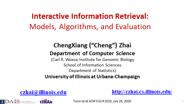 ACM Fellow-UIUC信息检索大牛翟成祥教授讲述 交互式信息检索:模型、算法和评估