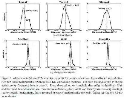本文的主要考虑6个知识图谱的嵌入表示模型,并把6个方法分为两类。一类是加法(additive)模型,有TransE[2]、TransR[3]和STransE[4];另一类是乘法(multiplicative)模型,有DistMult[5]、HolE[6]和ComplEx[7]。同时,本文采用了两个常见数据集FB15K和WN18。本文主要从以下4个发现展开实验分析。