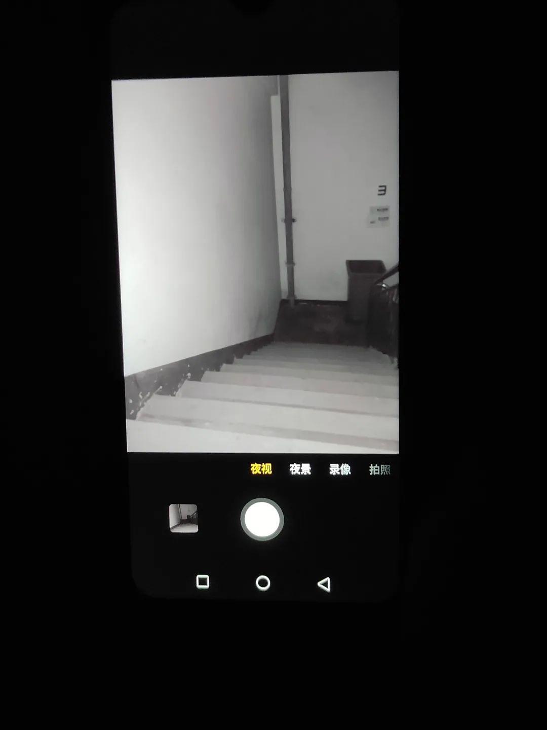 至于夜视仪这个功能,则是集成在原生的相机 APP 里面,可以直接使用。手头没有专用的夜视设备,所以无法相互对比,不过我在照度计显示亮度 0.8lux 的楼梯间里面,确实是比我自己的氪金狗眼看得清楚的多。