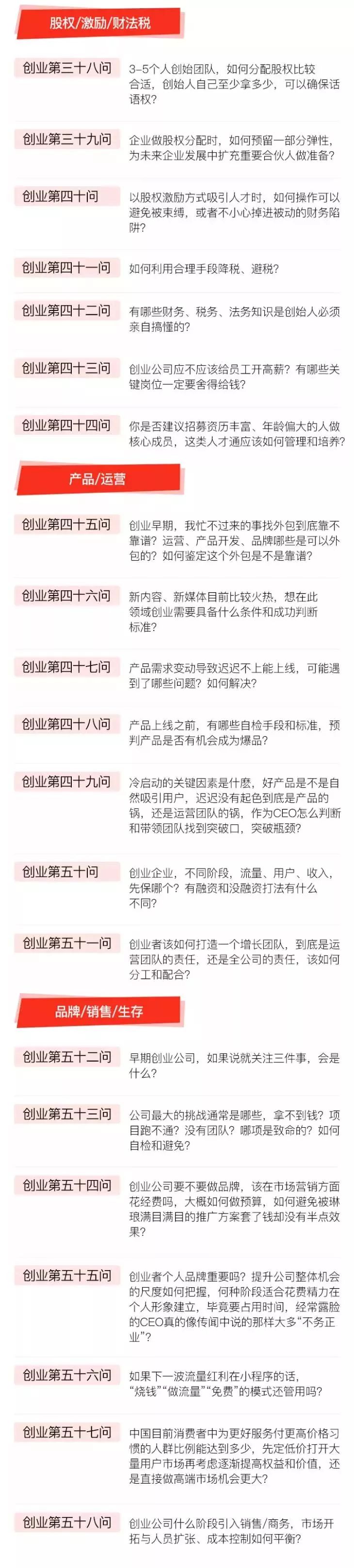 从1429中提炼出58个共性典型问题,决心帮助创业者寻找答案,大家可以自检是否遇到以下问题,或者已经找到适合自己的解决方案: