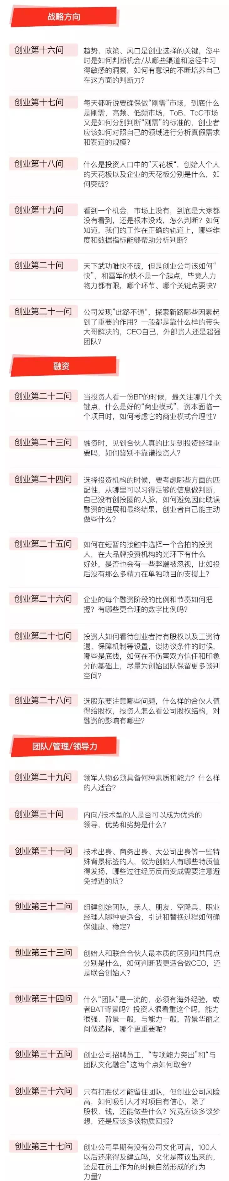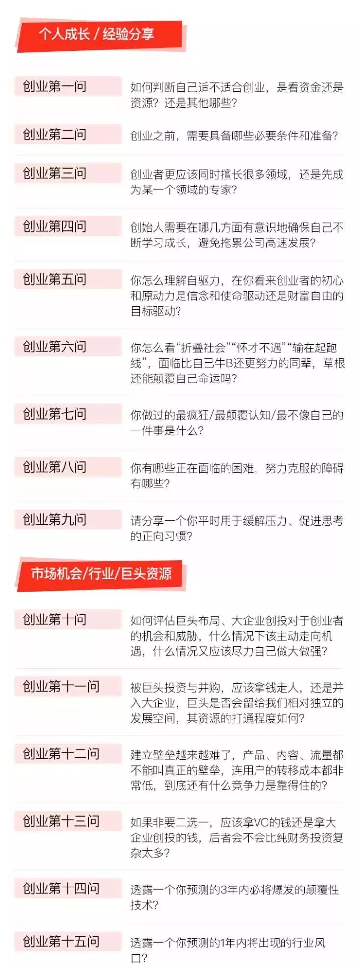 历时2个月,邀请了50位经验丰富的投资人、企业家、成功创业者、领域专家分别对以上问题进行一一解答,通过探求走过这些路的人的经验,可以为更多人带来启发,减少踩入同一个坑的可能性。