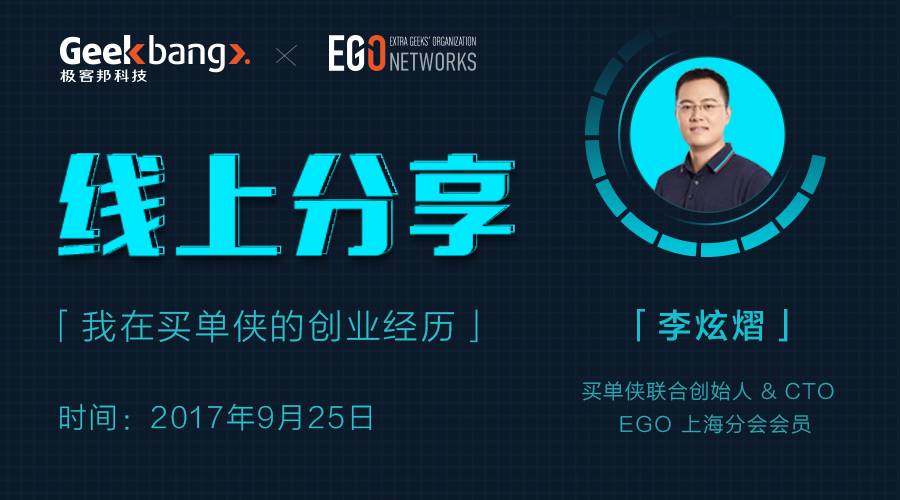 超过 400 位技术领导者同侪学习及所在企业展示交流,尽在 EGO 线上分享。EGO 上海分会会员、买单侠联合创始人兼 CTO 李炫熠作为 EGO 线上分享第一季嘉宾,与大家交流了他在买单侠的创业经历。